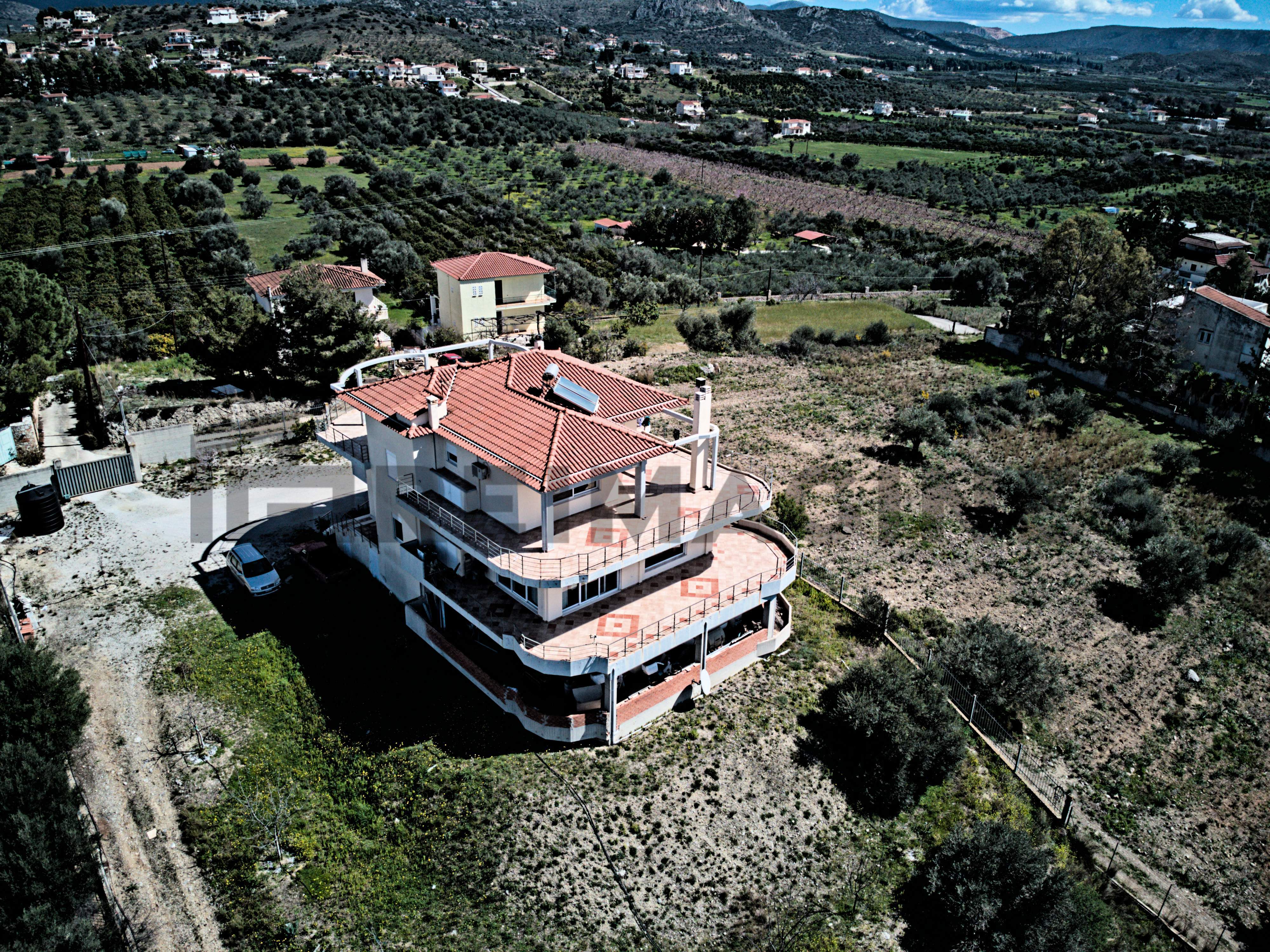 Discover your new sanctuary in the serene region of Agios Adrianos, Nafplio, where a luxurious three-story detached home awaits, sprawling over a substantial 254 square meters of living space, complemented by an additional 170 square meters on the ground floor. This additional space can be fully enclosed, offering flexible options for use as storage or auxiliary rooms.