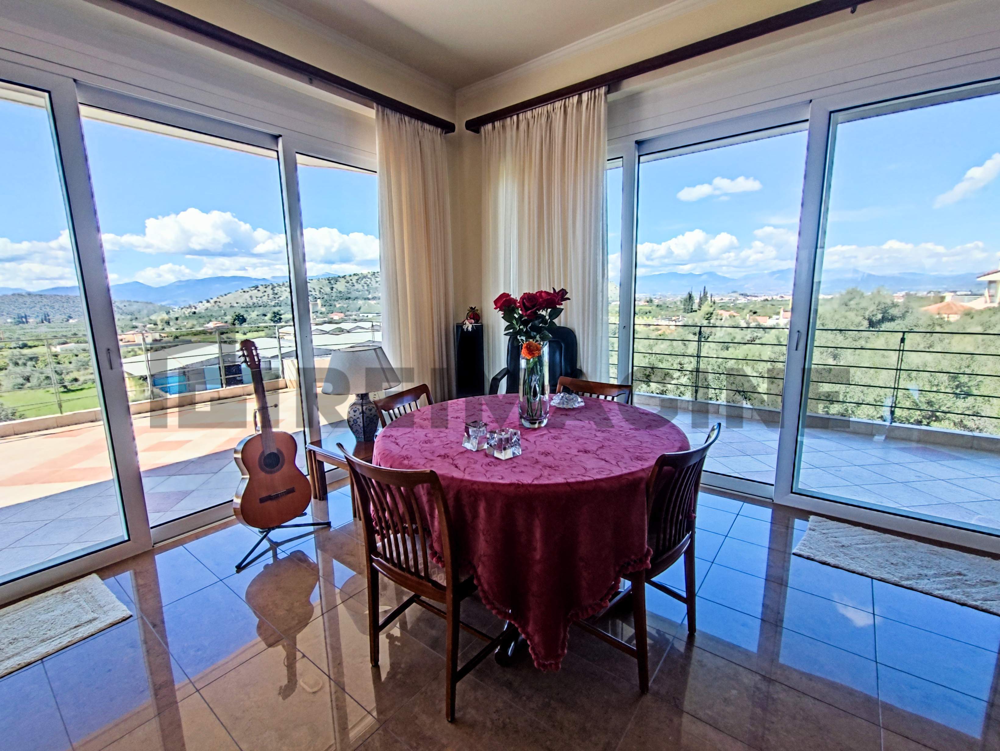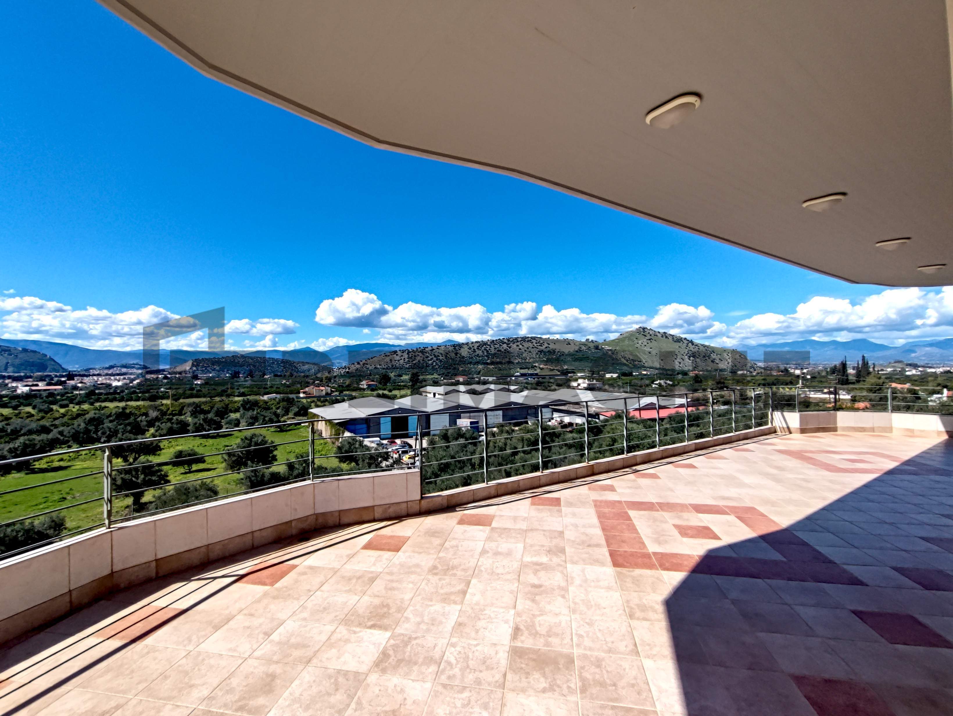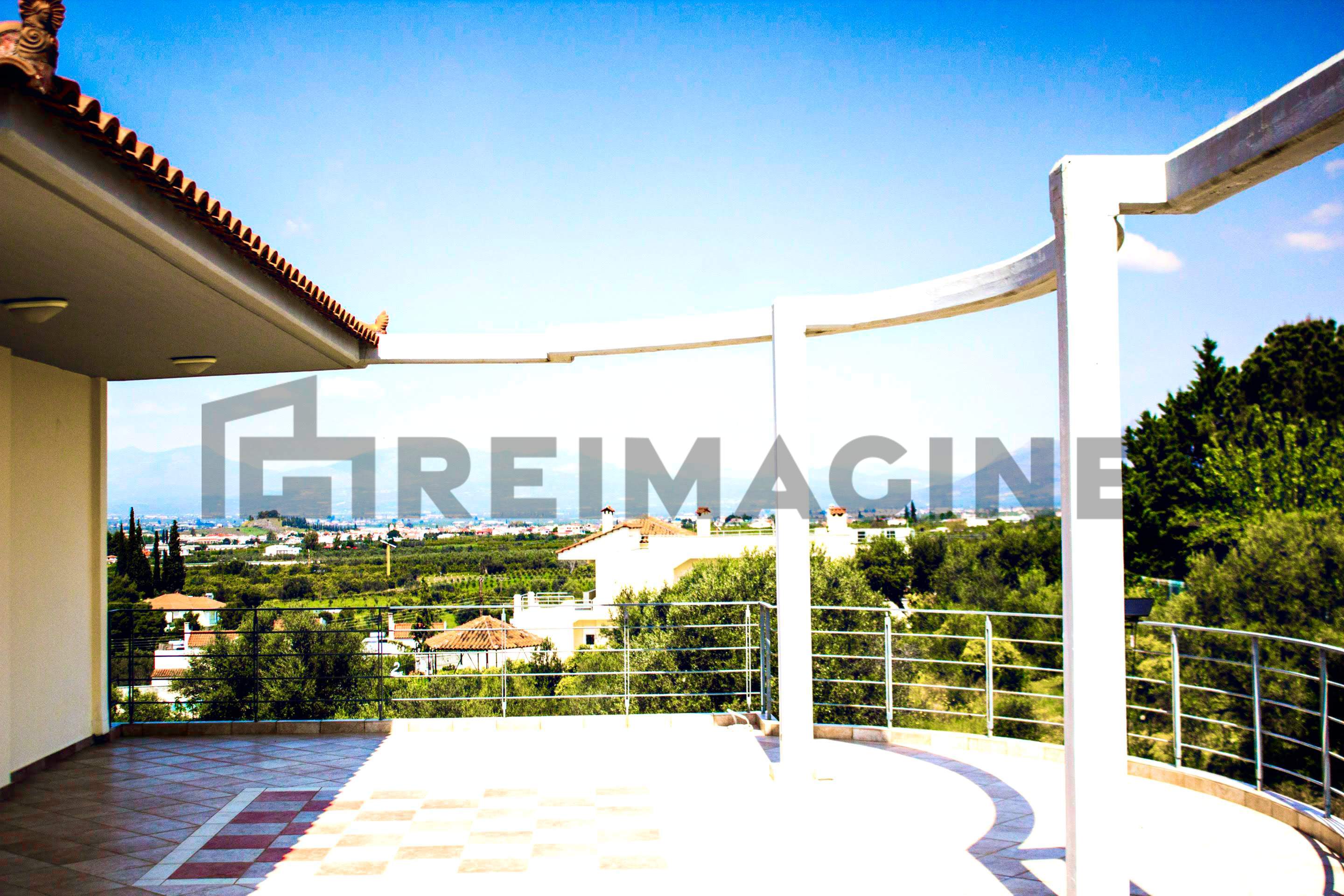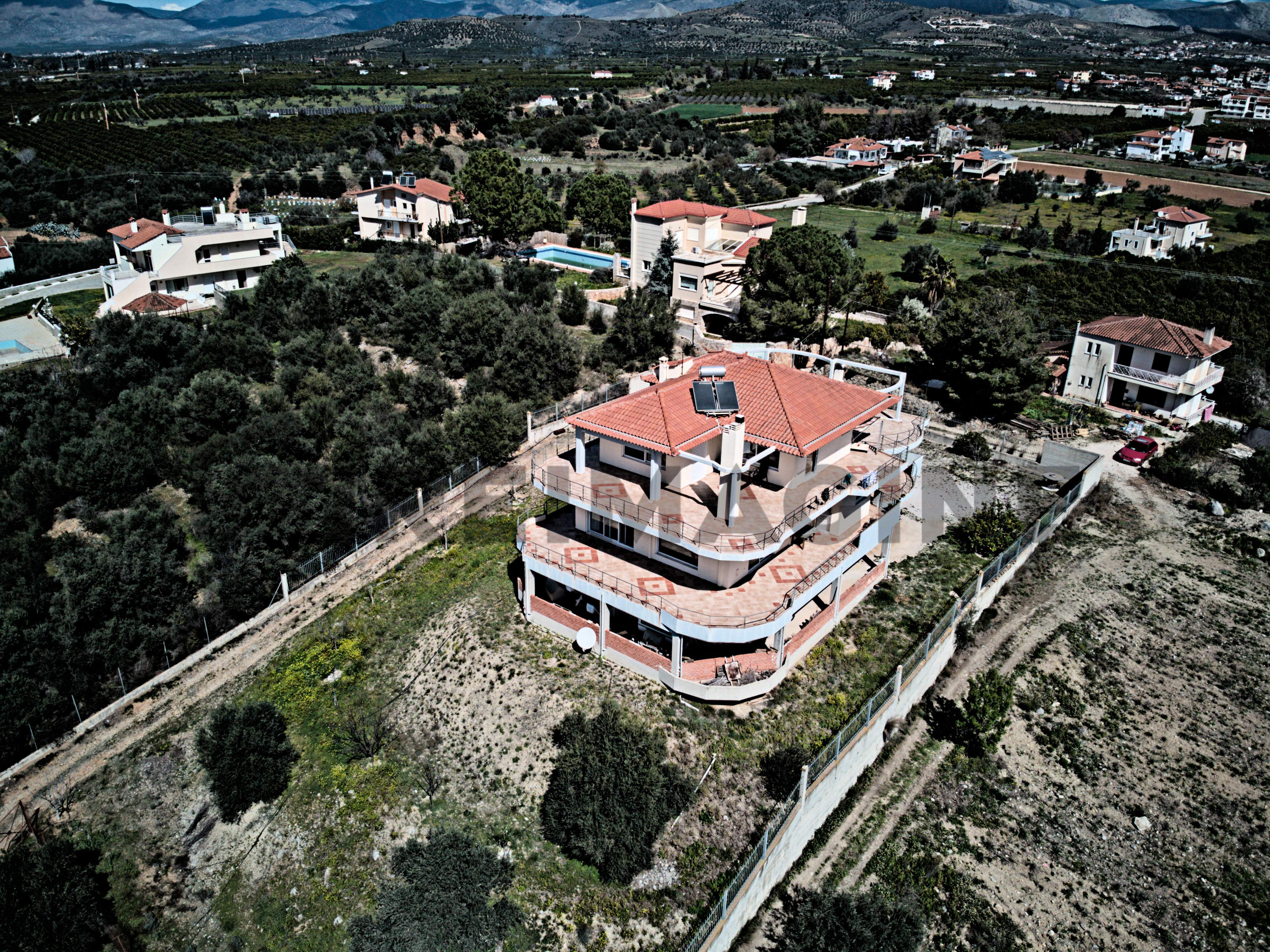 Outdoor living is just as impressive, with extensive balconies totaling 180 square meters that offer panoramic views of Nafplioโs castle and the sea, perfect for entertaining or quiet reflection. The property sits on a generous 3000 square meter plot, beautifully landscaped with a lush garden that invites outdoor activities and relaxation. Additional amenities include air conditioning, an electric appliances suite, awnings, mosquito screens, double-glazed windows, a solar water heater, entrance steps, an attic, a playroom, a spacious and open interior layout, and internal staircases.