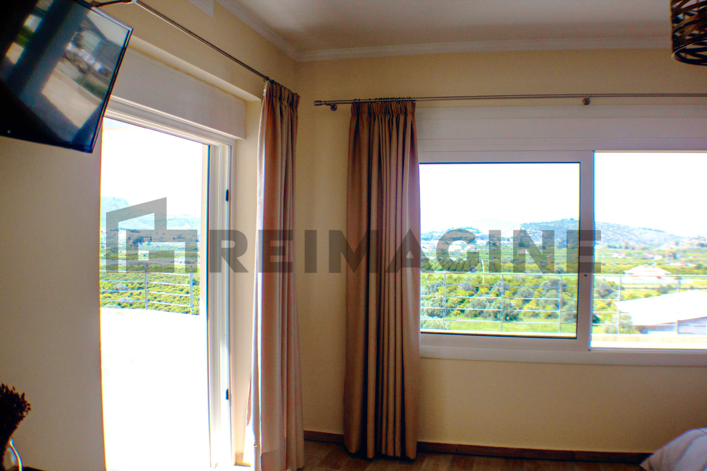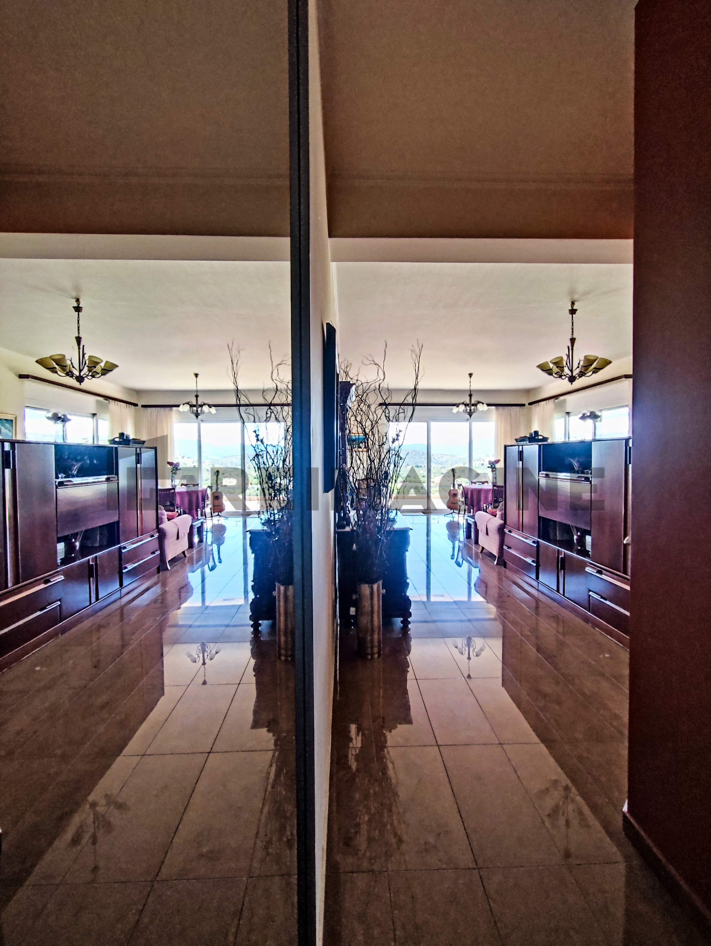 The expansive living areas exude elegance and brightness, highlighted by a high-efficiency fireplace that adds warmth and charm. The home is equipped with underfloor heating powered by oil, ensuring a cozy environment throughout the colder months. Large sliding aluminum windows frame the stunning mountain views and invite abundant natural light, while granite floors add a touch of luxury underfoot. The homeโs security is enhanced by a reinforced door, built-in wardrobes, and pre-installed alarm and elevator systems that offer vertical movement from the basement to the upper floors.